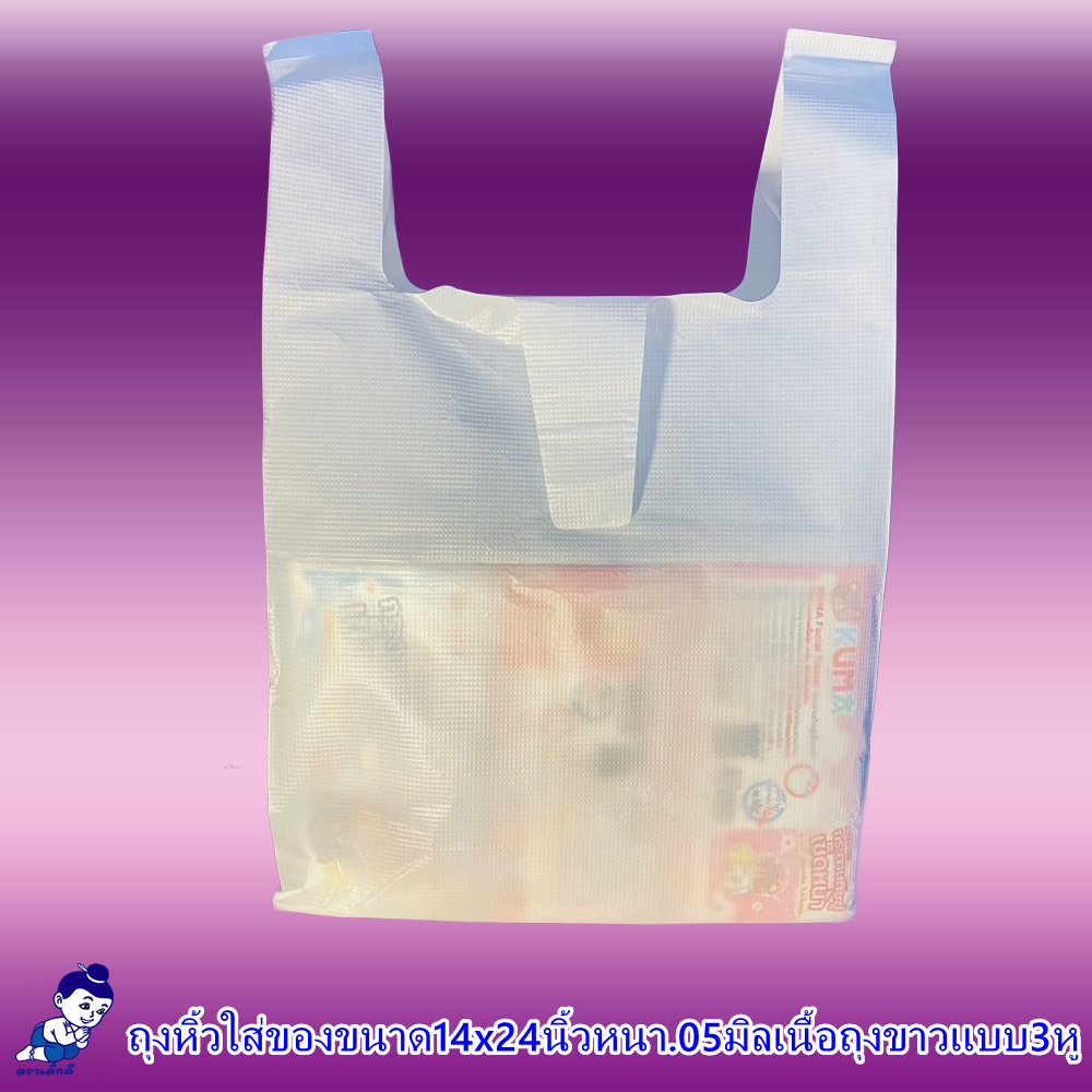 ถุงหูหิ้วพลาสติก ตราเด็กดี เนื้อถุงสีขาวแบบ3หู อัดลายเนื้อถุงนูนเด่นชัดสวยงามเมื่อกระทบแสงผลิตจากเม็ดพลาสติก HDPE แท้ เกรดA มือสัมผัสถุงได้ ใช้ใส่อาหารได้ไม่มีส่วนผสมเม็ดพลาสติกรีไซเคิลที่ก่อให้เกิดสารตะกั่วปนเปื้อนซึ่งเป็นสารตั้งต้นของการเกิดโรคที่เป็นอันตรายต่อสุขภาพของผู้ใช้ เนื้อถุงแข็งแรงหูไม่ยืดรับน้ำหนักได้ดีขนาด 14x24 นิ้วหนา.05มิล ความหนาสำหรับซุปเปอร์มาร์เกตทั่วไปใช้กันโปรดมอบความไว้วางใจในผลิตภัณฑ์ที่มีคุณภาพได้มาตรฐานตราเด็กดีขนาดบรรจุ 1มัดๆละ10ห่อๆละ 50ใบน้ำหนัก6660กร้ม